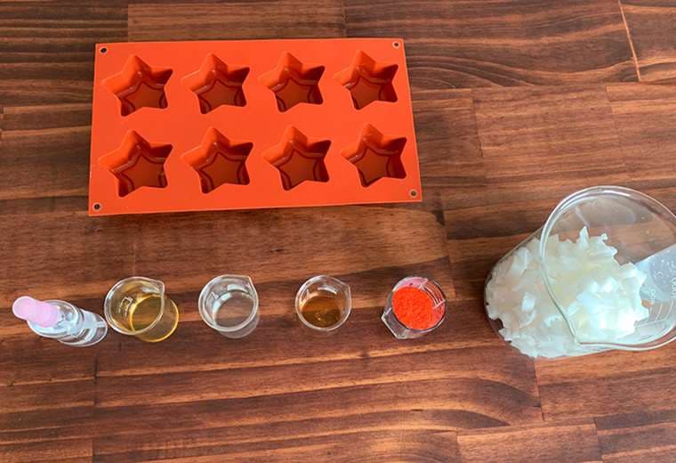 "En el molde de jabón escogido, en mi caso fue uno de estrellitas, deberá de verter la mezcla de jabón. Si el molde del jabón es muy pequeño, lo mejor será colocar antes un poco de desmoldante", agregó la ingeniera química.