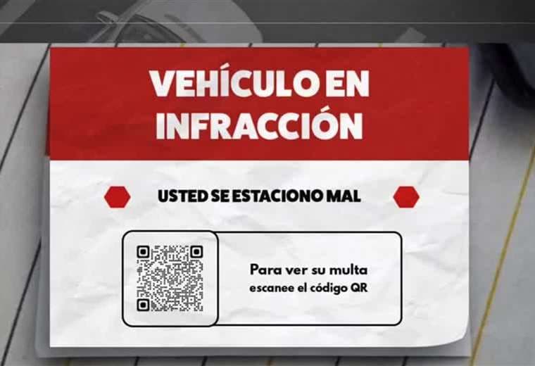 El papel aparece con el título “Vehículo en infracción”, seguido de la frase “Usted se estacionó mal” y un código QR acompañado de la instrucción: “Para ver su multa escanee el código”. Sin embargo, se trata de un fraude diseñado para engañar a los conductores.