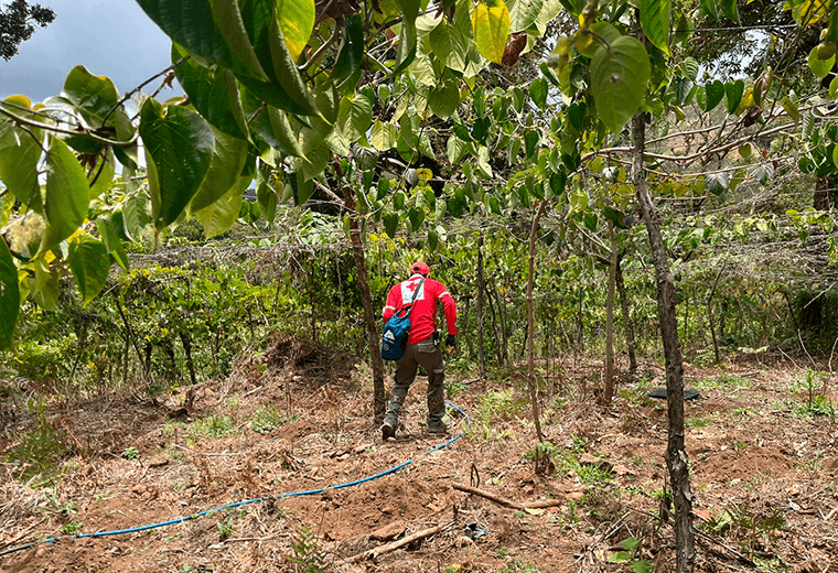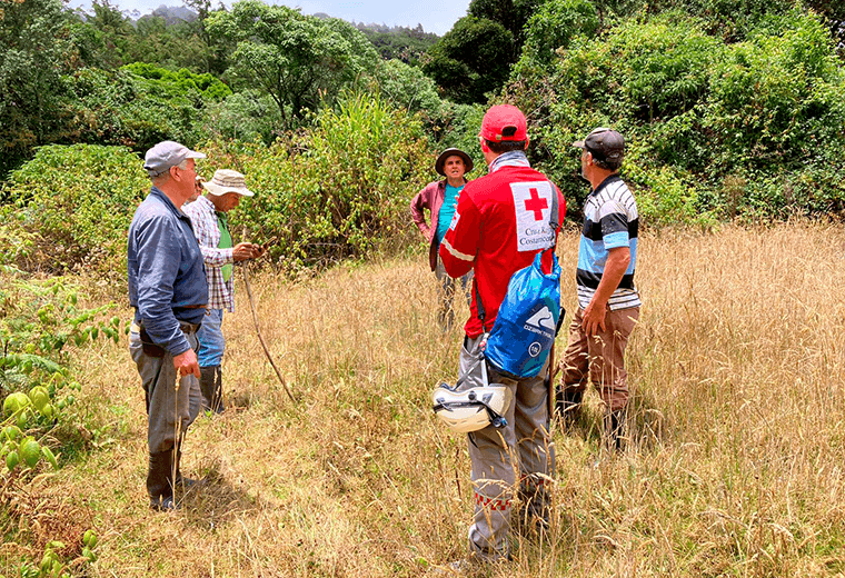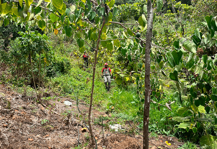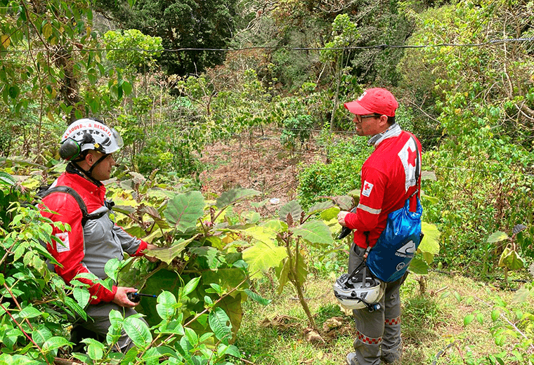 Unidades especializadas de Cruz Roja y Fuerza Pública utilizan drones y perros para tratar de encontrar a un menor de tres años que se extravió en una montaña de La Cima, en Dota, zona de Los Santos.