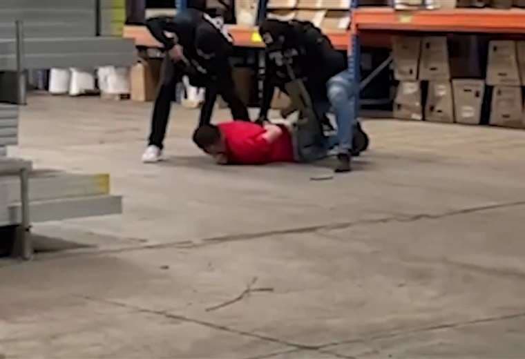 Varios videos grabados por personas que pasaban por la ferretería ubicada cerca de Cieneguita, Limón, captaron el momento de la detención por parte de OIJ.
